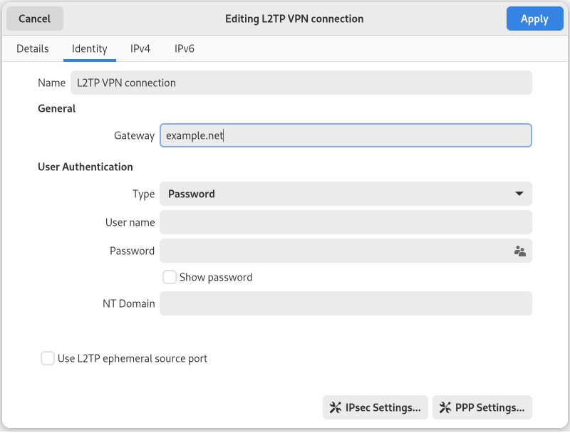 NetworkManager VPN support for L2TP and L2TP/IPsec