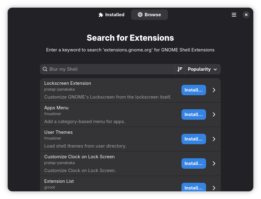 A native tool for browsing, installing, and managing GNOME Shell Extensions.