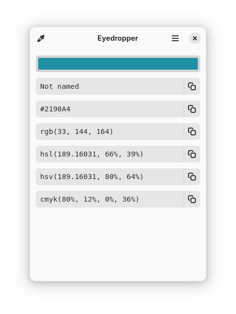 An application to pick and format colors. Features: - Pick a Color - Enter a color in Hex-Format - Parse RGB/RGBA/ARGB Hex-Colors - View colors in formats - Customize which formats appear as well as their order - Generate a palette of different shades